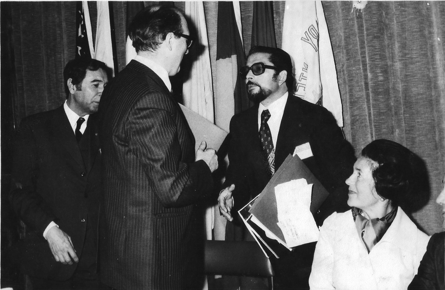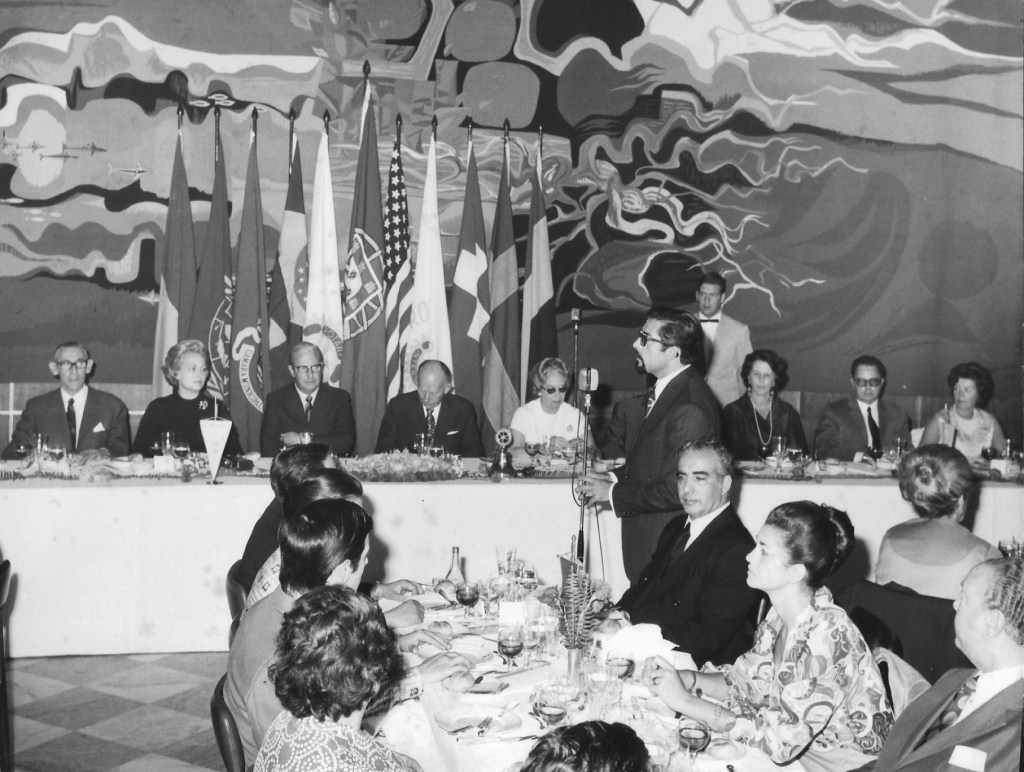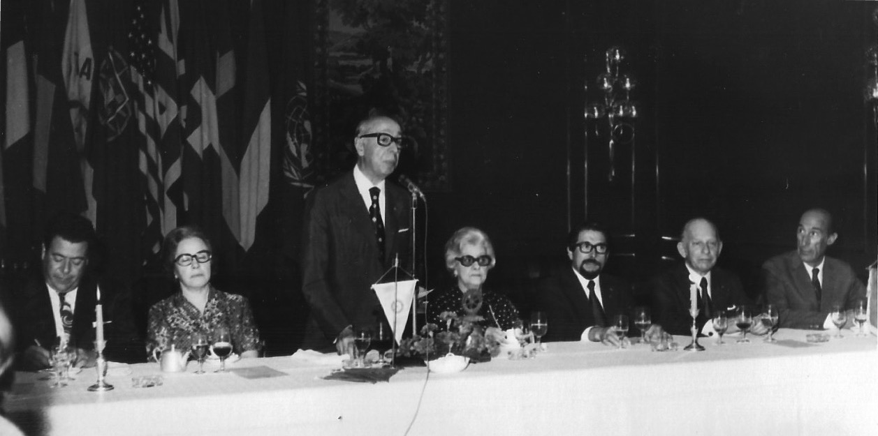 Entrega da Carta Constitucional 31-10-1971, Hotel Estoril Sol. Mesa da Presidência constituída pelo Comandante Carvalho e Almeida e esposa, o secretário de Estado Dr. Moreira Baptista e esposa, Juiz Presidente do Tribunal e esposa.