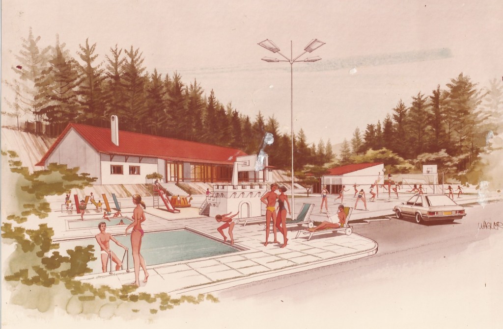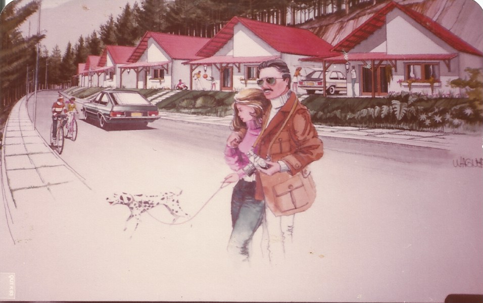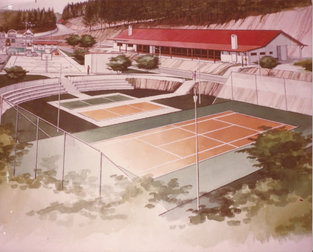 Abertura das fundações em Setembro de 1983. Finalização da área em torno da piscina em Fevereiro de 1984. Vista geral, Janeiro de 1986. Quadra de Squasch e badmington, Janeiro de 1986. Acessos ao restaurante e outros serviços, sala de jogos, interior do restaurante, vista do mini-zoo em Março de 1987. Construção dos chalés, 1984.