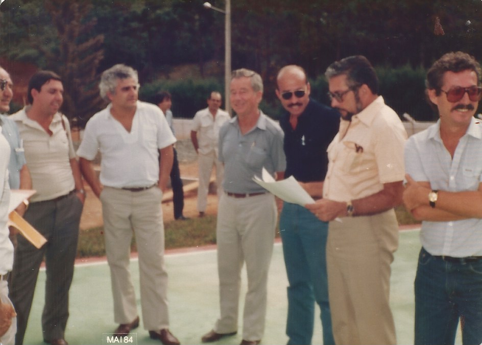 Secretário da Indústria e do comércio – Hermes Laranja, Presidente da Encatur – Paulo Borges, Joel Velten, Joaquim Tech, Dr. Varejão e Joaquim Baraona, Maio de 1984.