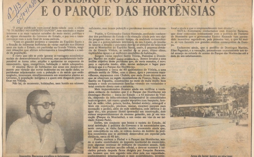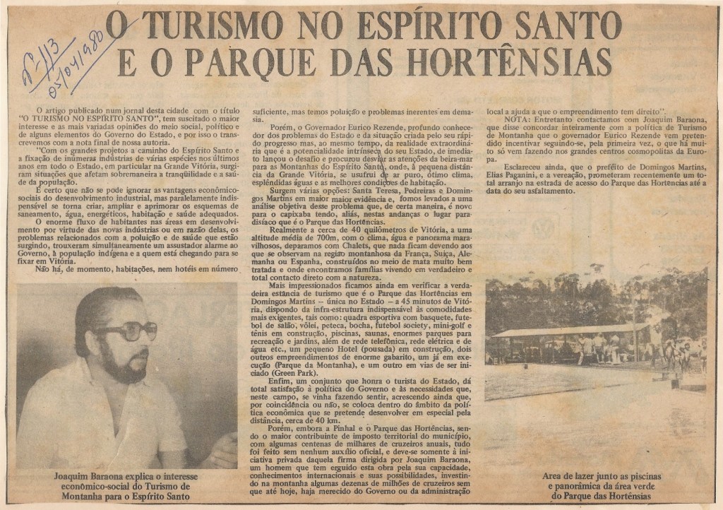 Joaquim Baraona (Ourique 1930 - Cascais 2018) Empresário Cascalense e Capixaba de coração. Homem dos sete ofícios foi Director da Misericórdia de Cascais, Vice-cônsul de Portugal em Vitória no Espírito Santo. Foi também jornalista e impulsionador das mais diversas associações como os Amigos do Paredão (Cascais). Foi Membro da Academia de Artes e Letras Espírito Santense e da Academia de Artes e Letras do Estoril. O Município de Domingos Martins inaugurou em sua honra uma praça no Parque das Hortências, projecto do qual foi fundador. Em 2009, foi agraciado com a Medalha de Honra de Cascais tendo posteriormente a Câmara Municipal de Cascais batizado uma rotunda com o seu nome. Ver todos os artigos de joaquimbaraona