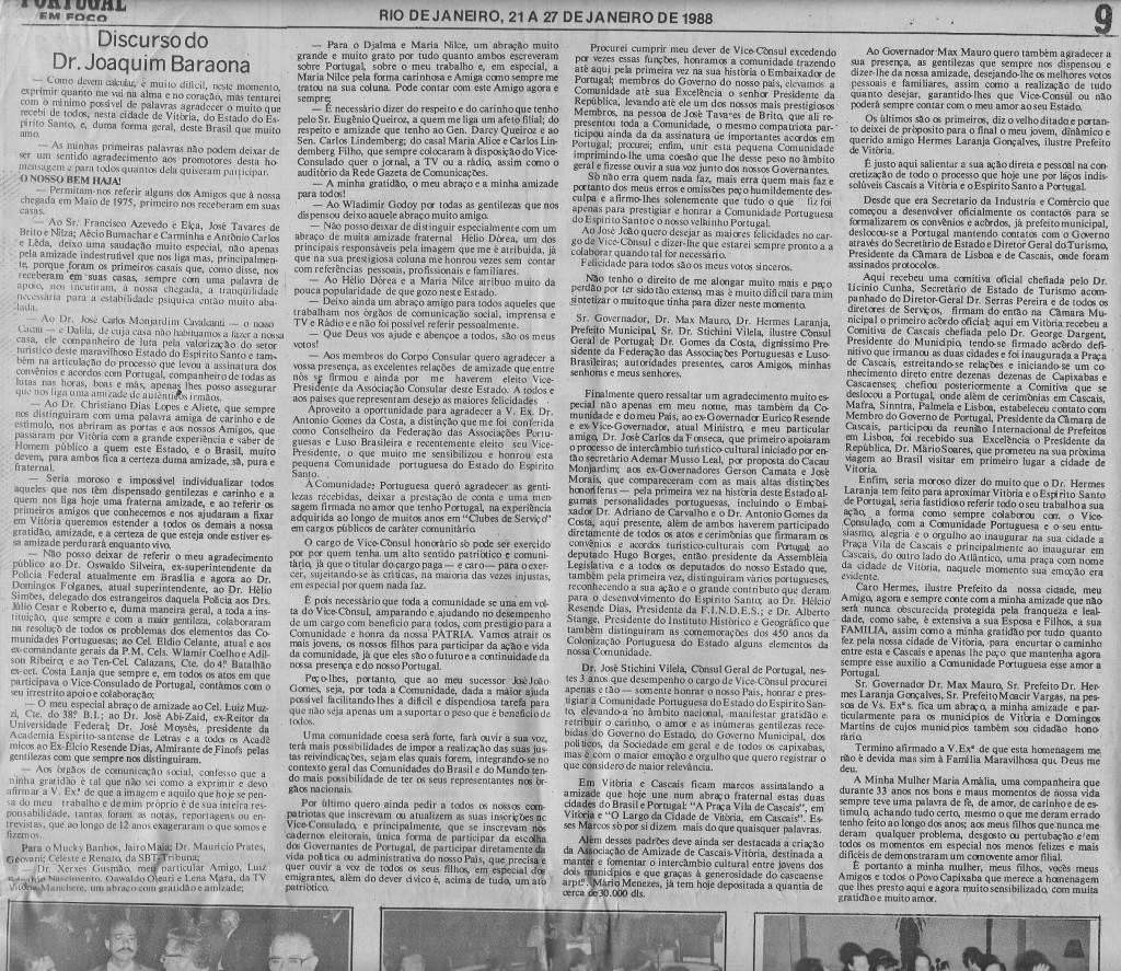 Portugal em Foco, Rio de Janeiro 21 a 27 de Janeiro 1988